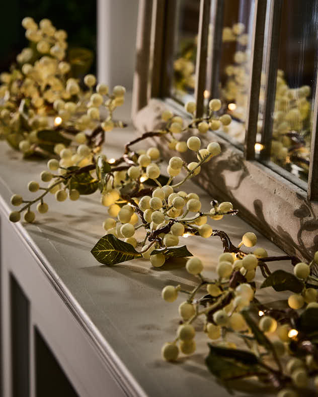 With elegant snow white berries, reflecting the light from the LED lights beautifully, this artificial Christmas garland is an ideal decoration for displaying on your mantelpiece, windowsill, or staircase during the winter months.