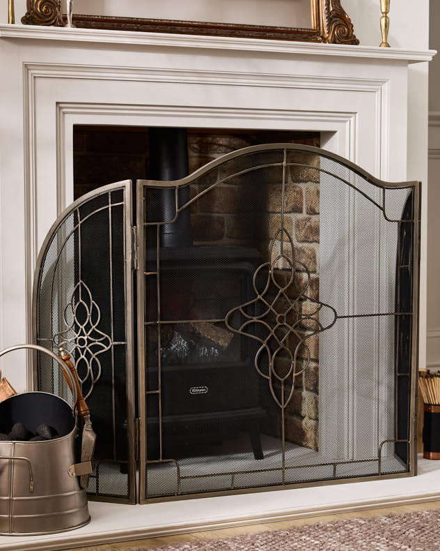 Style and protection unite with our selection of fire screens. They are a must in the UK to protect your living space from errant sparks and embers. Our Leaf Vine Black Three-Fold Fire Screen is a popular one, with its fashionable finish that will match the style of your fireplace as well as provide protection.