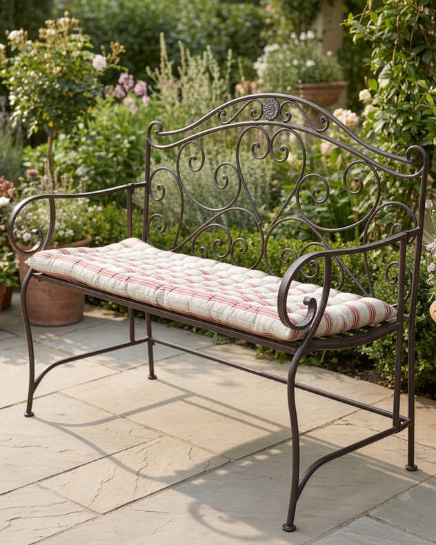 Red Stripe Quilted Garden Bench Cushion | Dibor