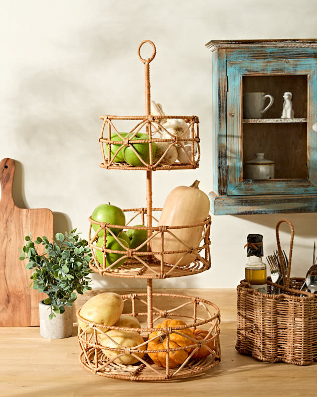 texture to your table. Our kitchen accessories will allow you to add a touch of style and practicality to your cooking space. We have a range of wicker and rattan storage baskets, ideal for storing fruit, vegetables, linen and spices, and country style cutlery caddy baskets, which will help keep your kitchen essentials tidy and stylish.