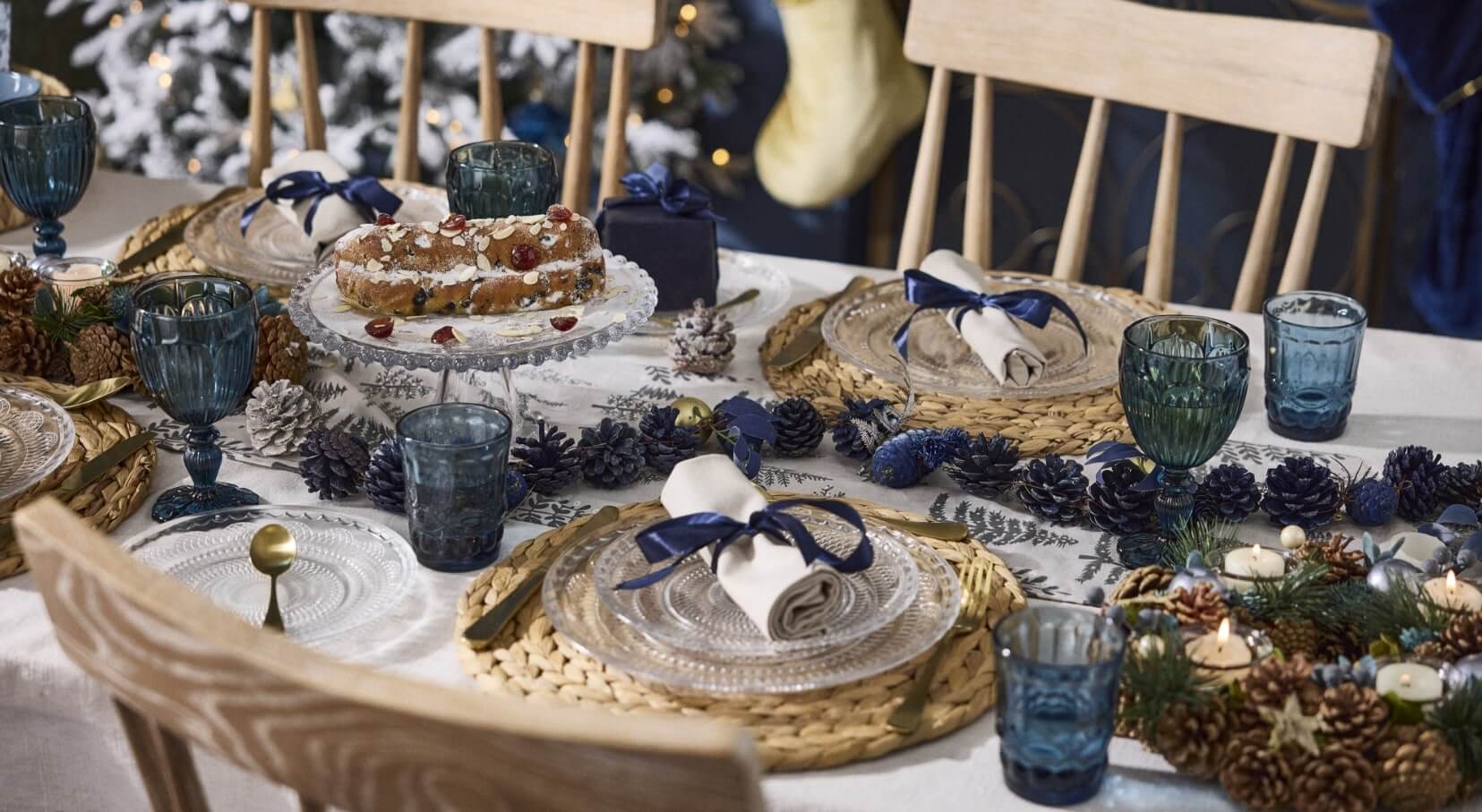 From opulent velvet stockings and enchanted stag ornaments to blue wine goblets, ribbed tumblers and glass mugs, every piece is designed to bring ambience and sophistication to your home this season. Elevate your décor with a Moonlight Christmas wreath or garland, add glow with tealight holders and candelabras, and finish with statement touches like silver wreath hangers or a blue snowflake tree topper.