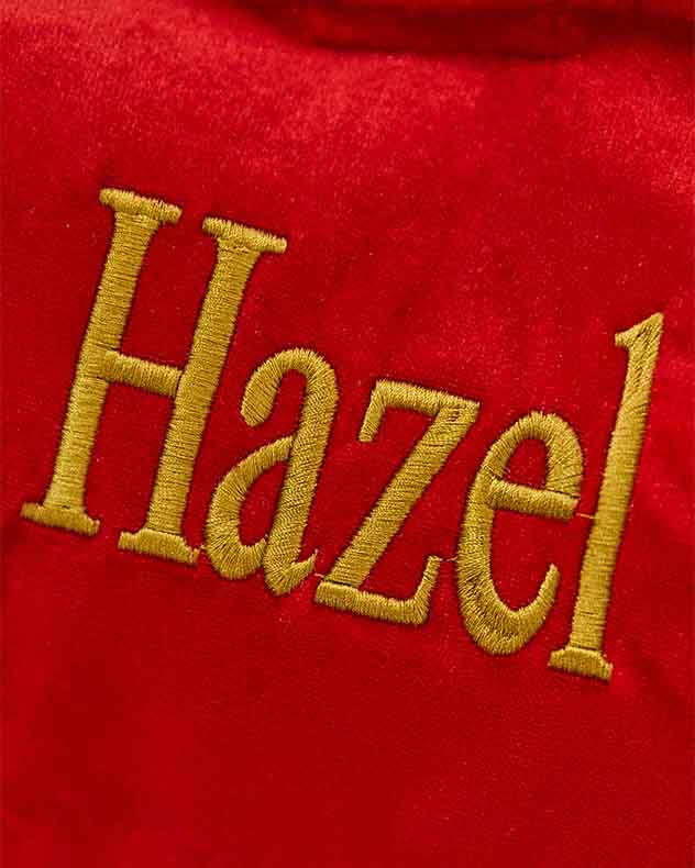 With an embroidered Father Christmas and one of his reindeer, the fun snowy scene in traditional, fun festive colours is sure to delight children of all ages. Personalised with a name of your choice in luxury gold embroidery, each sack is unique to its owner, and is guaranteed to be used for years to come.