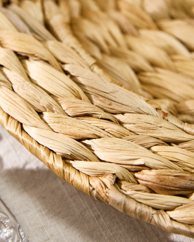Made from natural woven water hyacinth, this set of two inlaid charger plates are the perfect way to add the finishing touches to the dining table for daily dining or creating a unique and eye catching table spread for entertaining friends, family and guests.