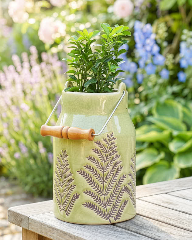 Many of the designs take inspiration from country houses and garden rooms, with soft glazes, botanical patterns and gently textured surfaces. Handled jugs and pitcher vases work particularly well for informal floral arrangements, offering an unfussy and welcoming alternative to more formal shapes. Taller vases and urn-style designs provide presence on the floor or a sideboard, while smaller pieces are ideal for shelves and window ledges.