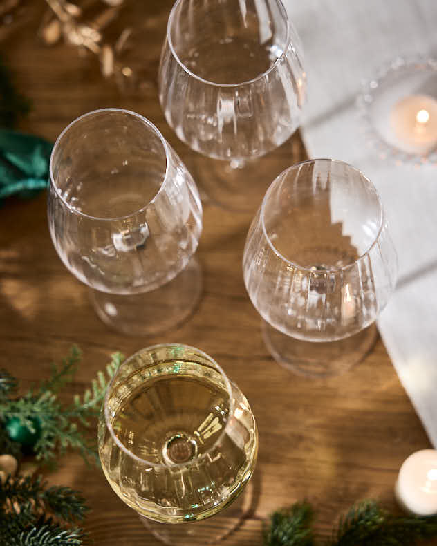 Perfect to add a touch of elegance to a party, our set of ribbed wine glasses are just the thing to celebrate in style.