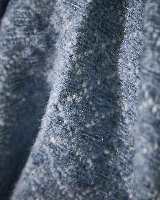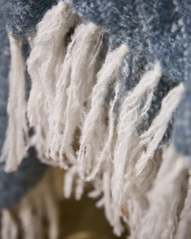 Mit seiner rauchblauen Farbe, den cremefarbenen Quastenrändern und dem dezenten Rautenmuster fügt sich das kühle Farbspektrum und das minimalistische Design mühelos in jede Wohneinrichtung ein, egal ob traditionell oder modern.