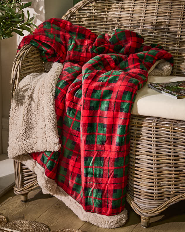 Mit ihrem klassischen Tartanmuster und der cremefarbenen Fleece-Rückseite passen die roten und grünen Farben garantiert mühelos zu jeder weihnachtlichen Heimdekoration .