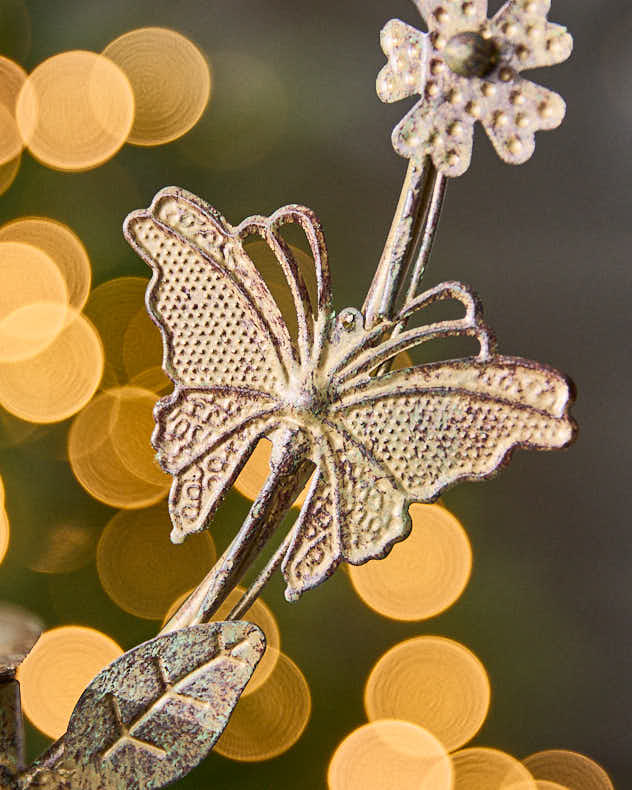 Diese messingfarbene hängende Herz-Vogelschale ist das perfekte Accessoire für Ihren Garten , wenn Sie Vögel gerne singen sehen und hören. Dieses herzförmige Vogelhäuschen besteht aus hochwertigem Recyclingeisen und ist mit einem wunderschönen Rankenmotiv um den herzförmigen Rahmen sowie wunderschönen dekorativen Schmetterlingen, Blumen und Blättern verziert.