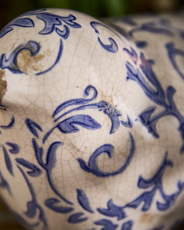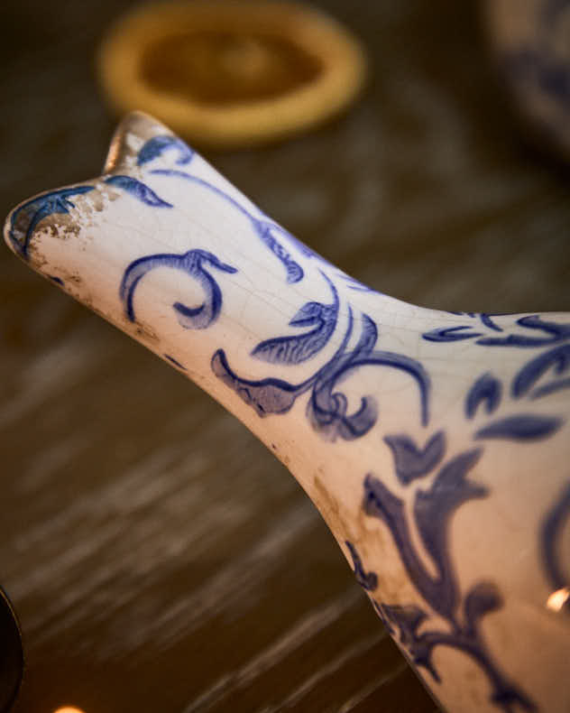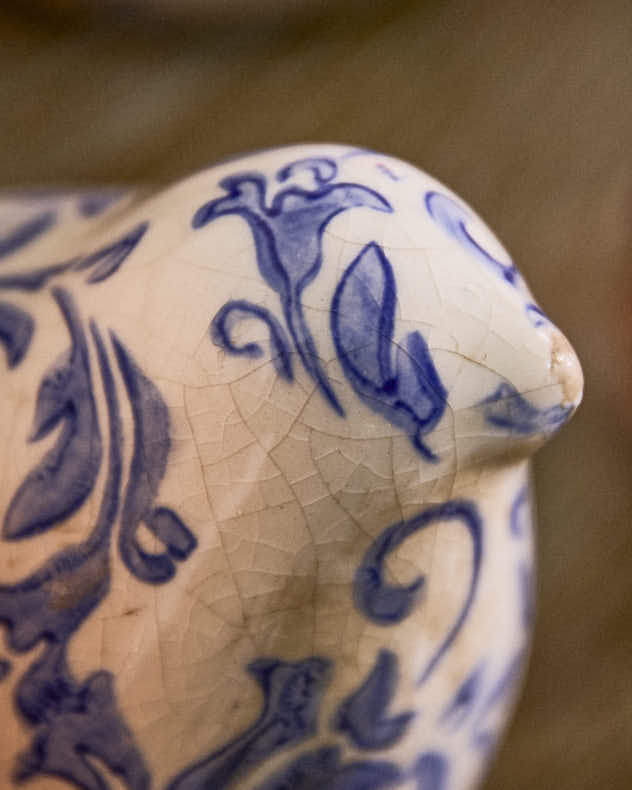 The decorative bird ornaments are made from high quality ceramic and are painted with a chinoiserie inspired pattern of bright blue leaves, making a lovely contrast against the ivory coloured background.