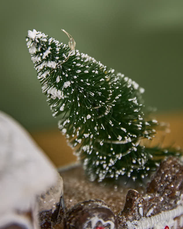 The pre-lit Christmas ornament even gives off a warm and cosy glow from the lights around the little tree to complete the effect perfectly.