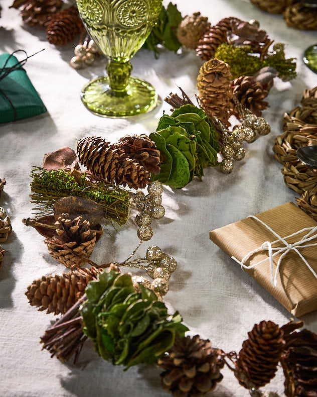Style your home with eucalyptus and spruce wreaths, natural woodland garlands and gold berry accents, perfect for creating a rustic yet refined Christmas look. Entertain in style with fern leaf glassware, green goblets and tumblers, or add charm to your table with jute runners and side plates.