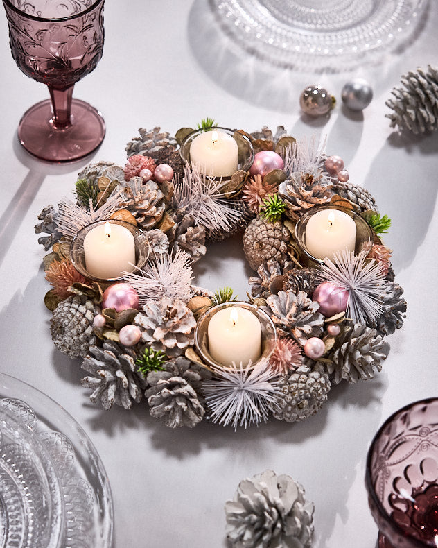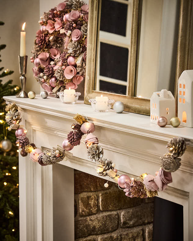 Adorn your home with frosted and rose wreaths, bauble garlands and pre-lit designs, or create a cosy glow with ornate candle holders, tealights and sparkling string lights. Elevate your festive table with Bella Perle glassware, pink goblets, tumblers and fine dining accessories, complemented by velvet stockings and golden tree toppers for a finishing touch.