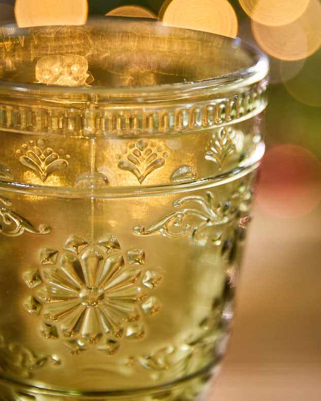 Including four jewel-bright colours that will catch the light beautifully, our opulent wine glasses are decorated with a hand-pressed embossed floral design that will bring a touch of luxury to any occasion.