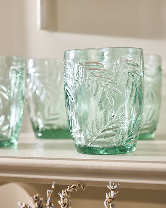 Cet ensemble de verres assortis arbore un motif de feuilles en relief pressé à la main et une douce couleur vert sauge qui ajoutera assurément une touche subtile d'inspiration botanique à vos célébrations et fera l'envie de vos invités.