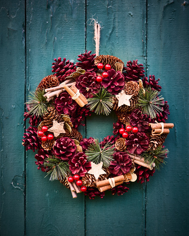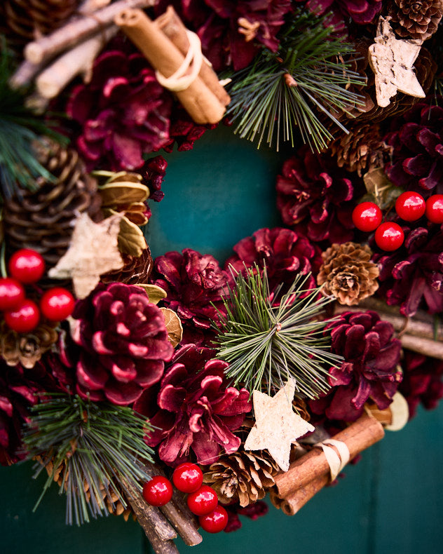 Décorez votre intérieur avec notre couronne artisanale couleur bordeaux, un classique intemporel qui continuera d'impressionner chaque Noël, année après année.