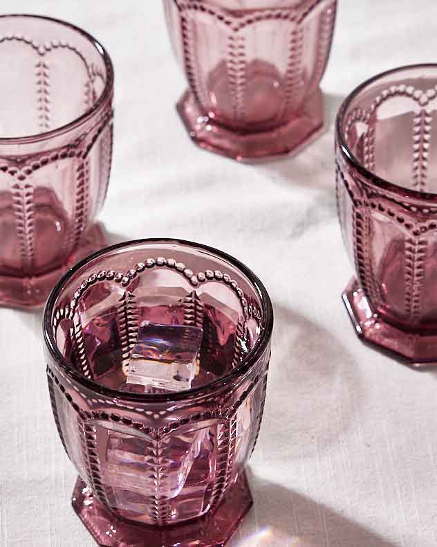 Avec leur motif classique en relief perlé, ces gobelets en verre ont une allure luxueuse et intemporelle, qui revitalisera instantanément votre table de salle à manger.